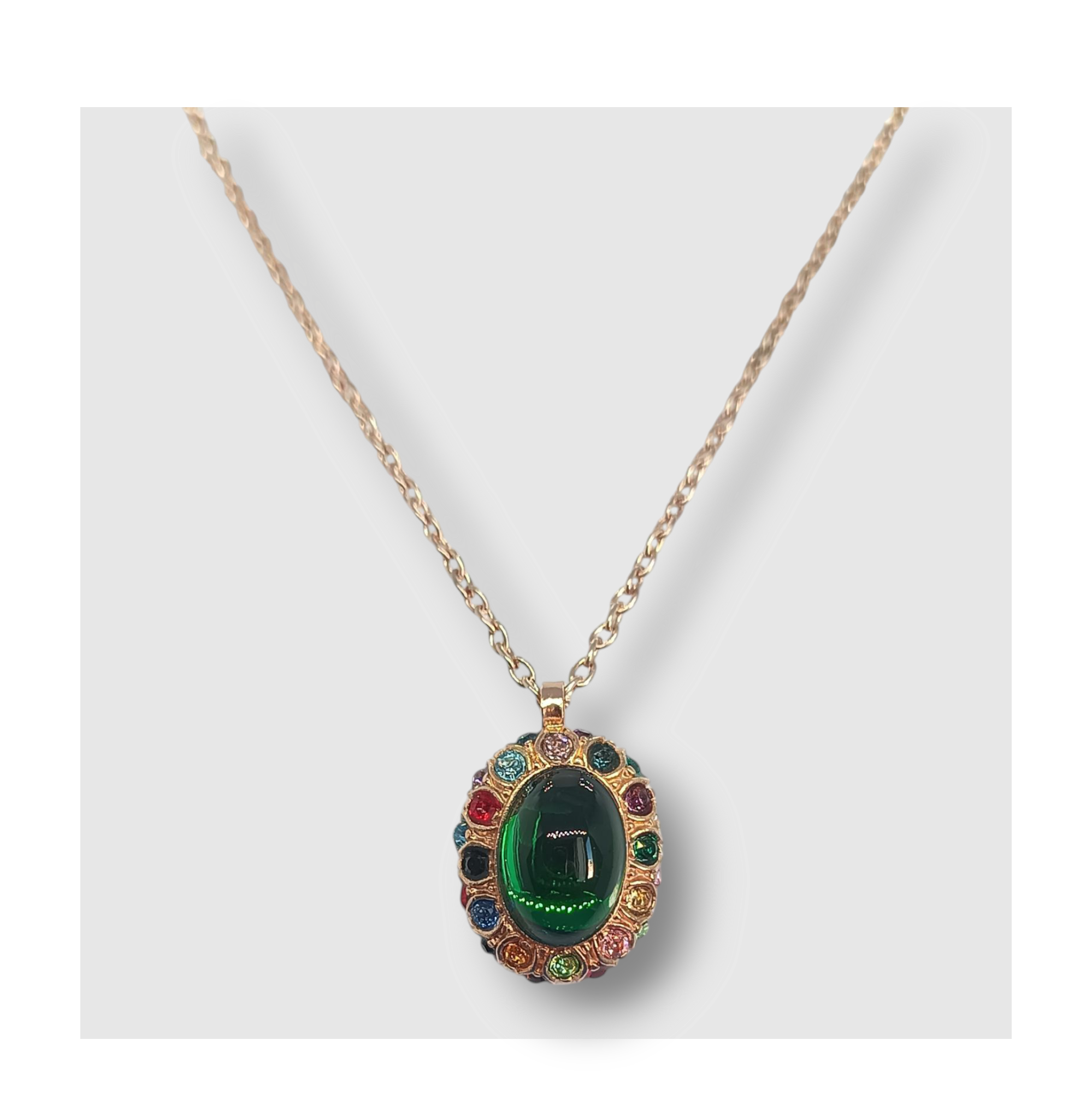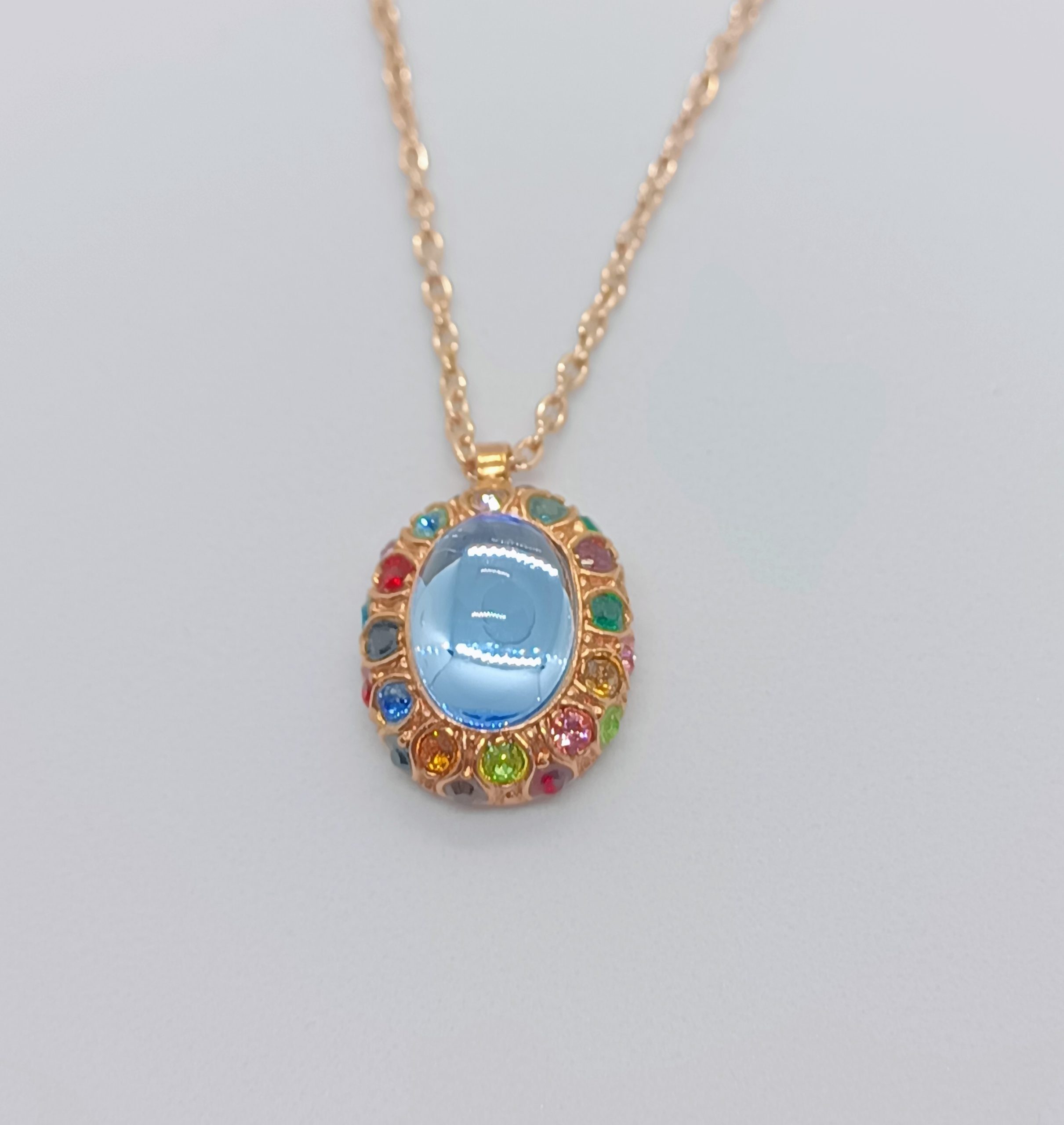 COLGANTE MULTICOLOR, LATÓN CON DIFERENTES ACABADOS Y COLORES, PIEDRAS SWAROVSKI.