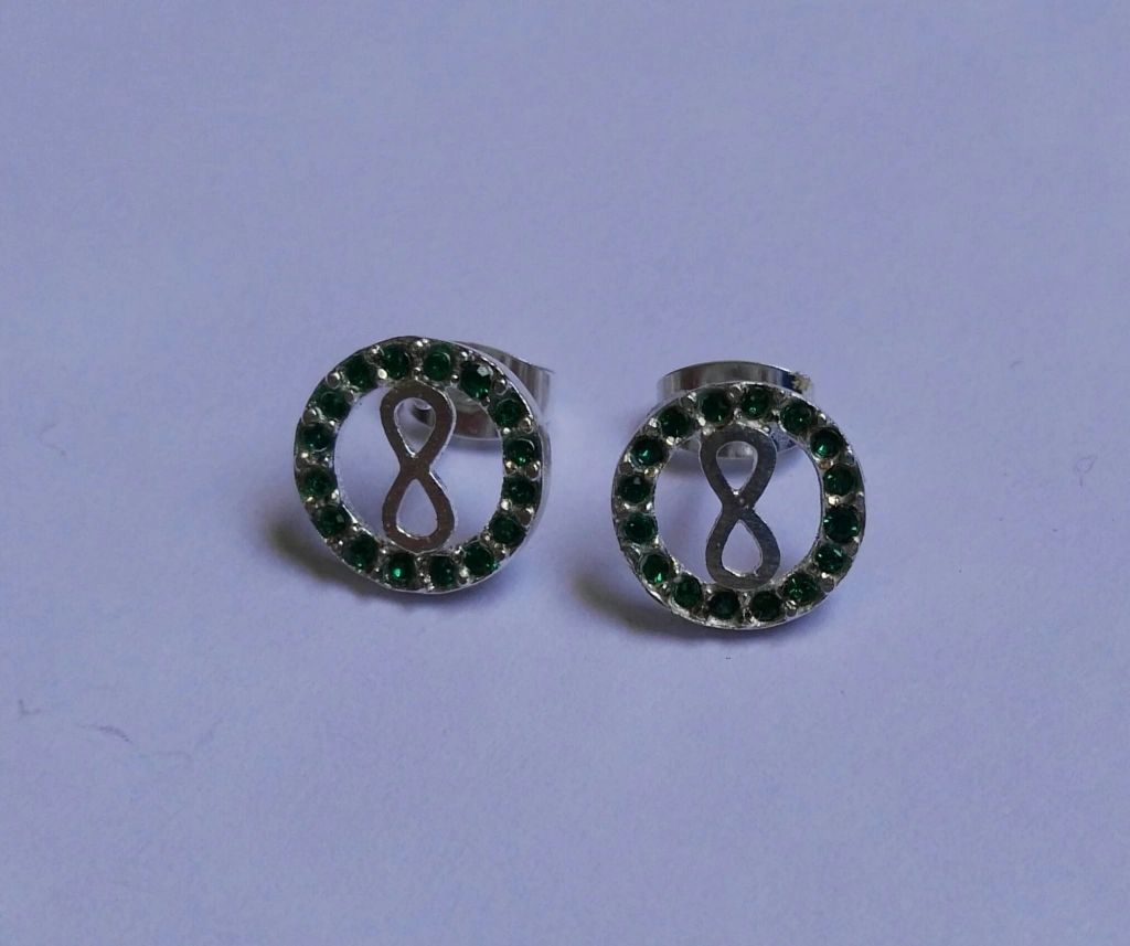 Pendientes de Infinito, de metal con baño de plata ó de plata de ley, piedras de cristal de swarovski.