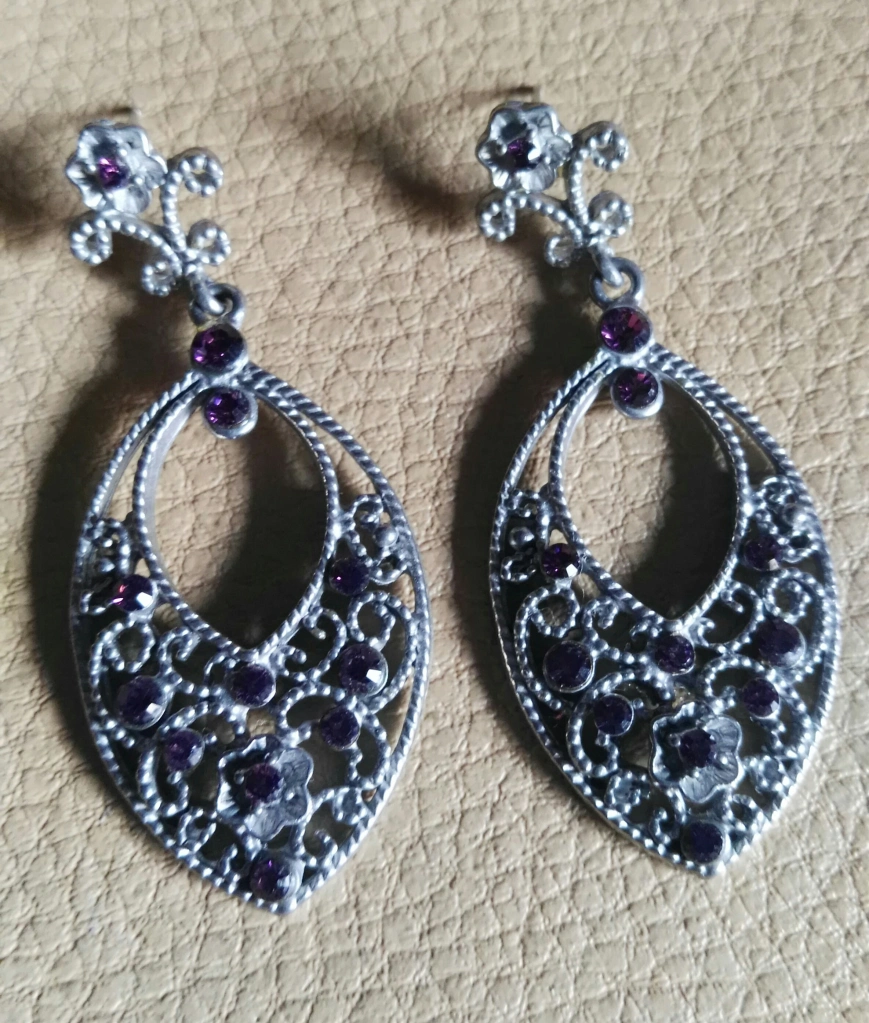 Pendientes de metal con baño de plata oxidadad , piedras de swarovski.