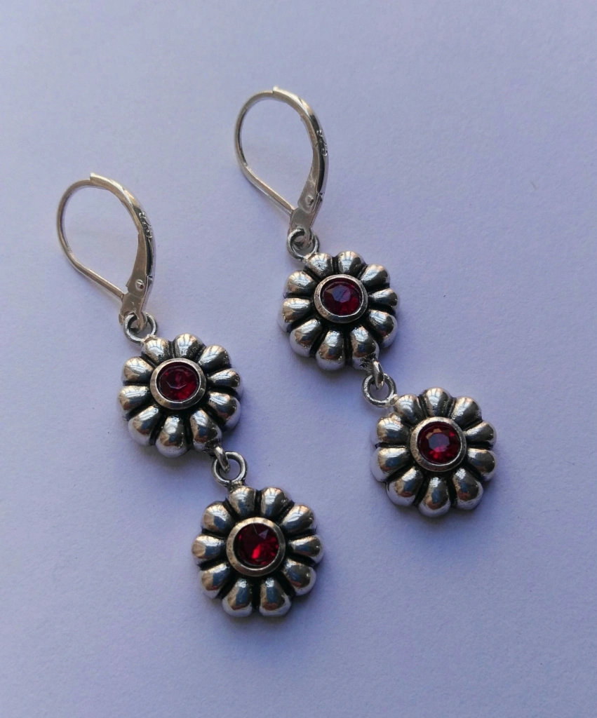 Pendientes de metal con baño de plata oxidada y cristales de swarovski color siam.