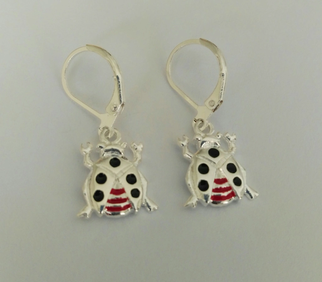 Pendientes de metal con baño de plata y esmalte.