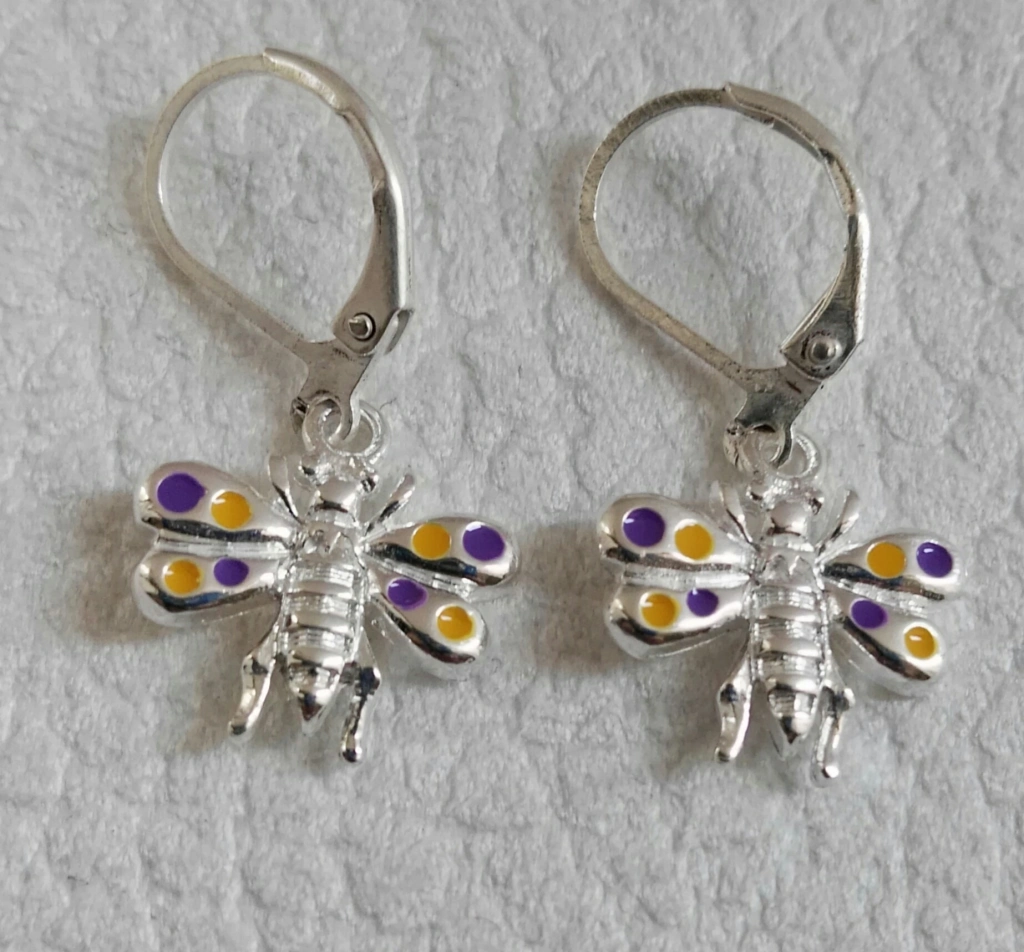 Pendientes de avispa de la suerte, de metal con baño de plata.