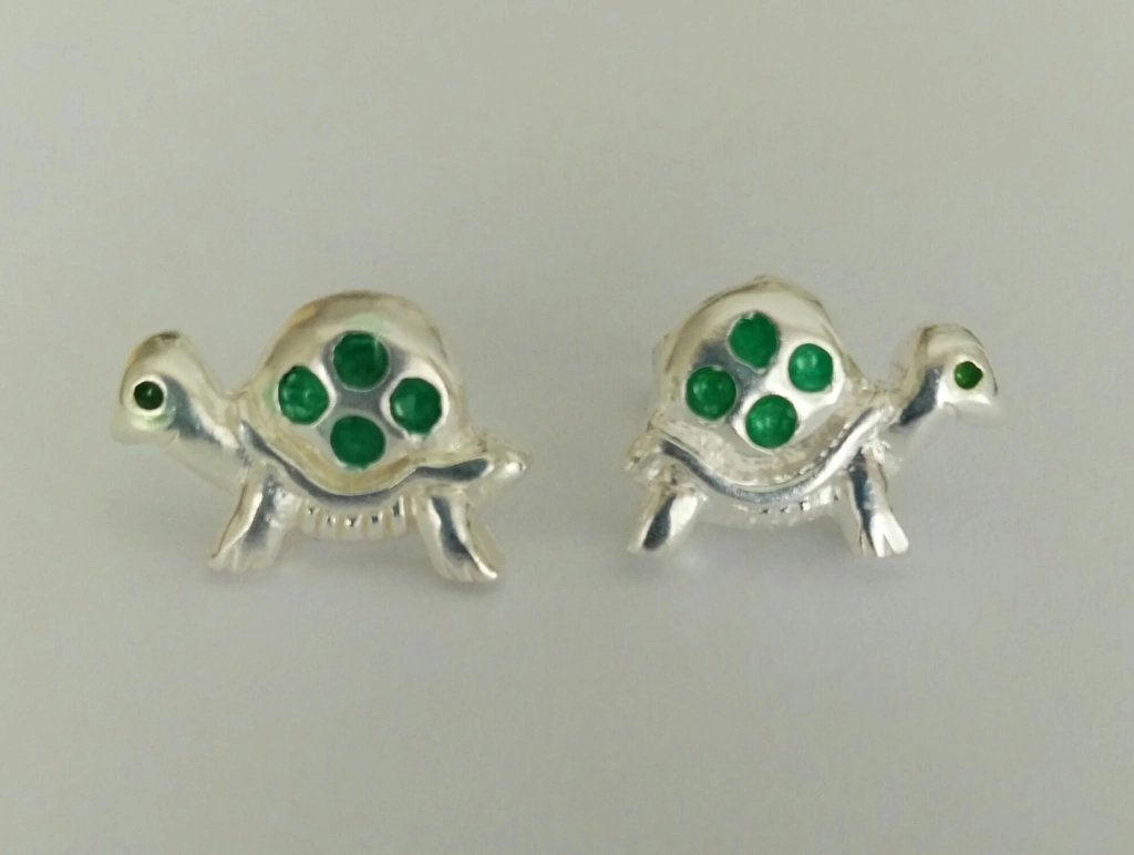 Pendientes tortuga, de metal con baño de plata y esmalte.